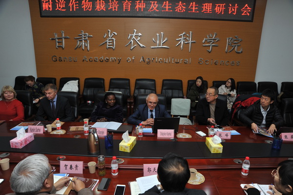 研讨会上,吉尔吉斯斯坦国家科学院植物与化学研究所所长Shalpykov Kaiyrkul研究员、肯尼亚农业与畜牧研究中心Susan Wanderi博士、中科院上海植物逆境中心张蘅研究员、中科院寒区旱区环境与工程研究所赵鹏善副研究员、甘肃农业大学张峰教授和我院畜草所刘文瑜博士分别作了藜麦、糜子、沙米和马铃薯等作物育种、抗逆性、生理生态、基因组学方面的报告。通过讨论,开阔了视野,提升了科研思路,取得了良好的效果,为今后我院与“一带一路”沿线国家的科技深度合作开启了新契机。