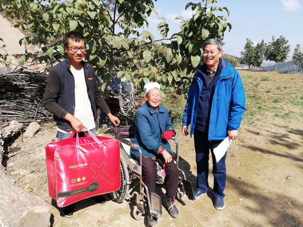 在扶贫攻坚决胜期小麦所严格按照院里帮扶攻坚总安排,先后选派3人(次)帮扶干部驻守镇原县方山乡关山村和王湾村开展帮扶工作,全力推进我院驻村帮扶工作。结合第六个全国扶贫日,小麦所组织杨文雄、王勇、杜久元、鲁清林、杨芳萍、王世红和刘忠元等7名帮扶干部在镇原县方山乡关山村开展政策宣讲、贫困户和驻村干部慰问,对帮联的14户贫困户挨家挨户进行入户调查和走访,向他们宣讲习近平总书记关于扶贫的重要论述,并详细了解他们的住房、过冬棉衣棉被和取暖物资储备情况。填写了“庆阳市‘十问十推进’核查表”,共同商议制定了明年的种植和养殖规划,给贫困户重新留下了提前打印好的帮扶干部联系方式,叮嘱他们在生产生活中遇到困难和问题及时联系,积极帮助他们协调解决。隆冬将至,为了确保联系的贫困户能温暖过冬,帮扶干部为14户贫困户送去了棉被等慰问品,使他们充分感受到党的温暖和关怀。