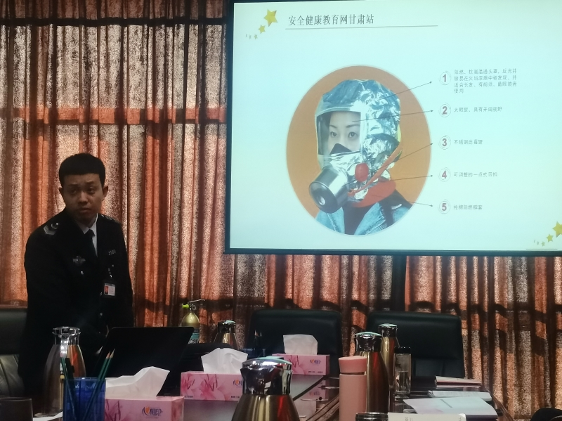 会议还邀请了国家安全健康教育中心甘肃分中心陈天麟教官从近期重大事故案例分析、遇到突发事件如何应对、电器、线路火灾预防、不同类型的消防设施正确使用、安全责任的划分及消防安全“五个能力”的普及等十个方面进行了培训。